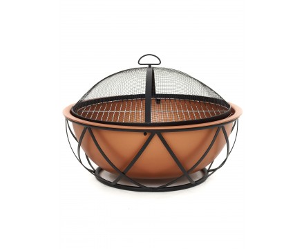 Каждая деталь выполнена из высококачественного жаропрочного металла. На нижней части емкости есть специальные прорези для поддува воздуха, что необходимо для лучшего горения дров или древесного угля. Для предотвращения вылета искр, способных стать причиной пожара, чаша закрывается специальной металлической сеткой с мелкими ячейками. Данная деталь конструкции выглядит очень оригинально, имеет ручку сверху для удобства закрывания/открывания.