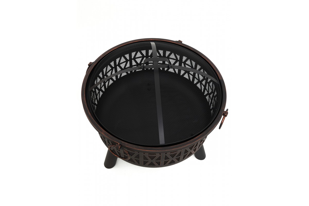 В днище чаша имеет специальные зазоры, благодаря которым обеспечивается поддув воздуха и поддерживается горение. Термостойкая эмаль позволяет изделию сохранять первоначальный эстетичный вид на протяжении всего срока эксплуатации. В комплект поставки входит решетка для гриля, удобная кочерга, сетка с ручкой для улавливания искр. В качестве топлива можно использовать обычные дрова или древесный уголь.